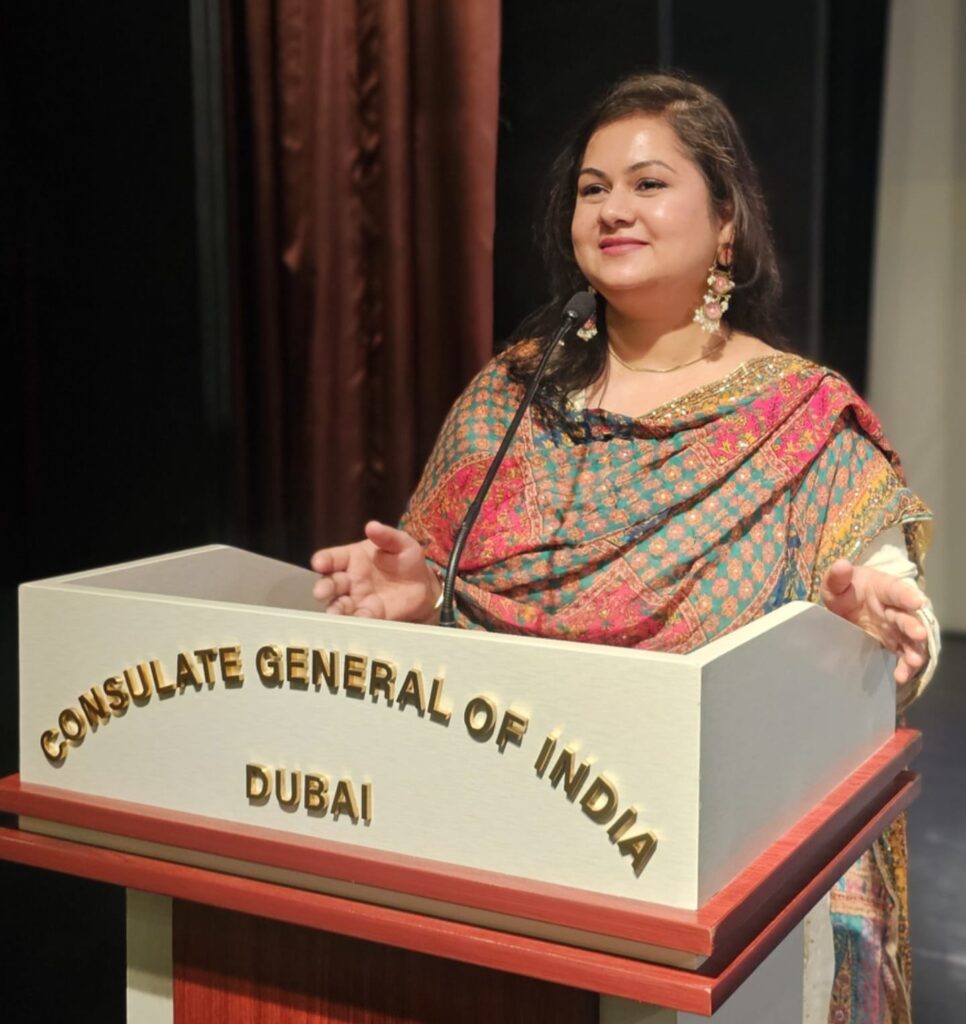 इस मुस्कान की वजह थी, अपनी मातृभाषा और साहित्य के करीब जाने का अवसर, जो उन्हें अंतरराष्ट्रीय महिला काव्य मंच, दुबई द्वारा मुहैया करवाया गया।