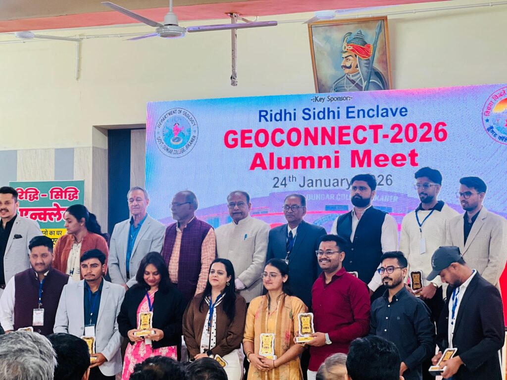 बीकानेर, 24 जनवरी । राजकीय डूँगर महाविद्यालय, बीकानेर के भूविज्ञान विभाग एवं भूविज्ञान विभाग एलुमनी सोसाइटी, बीकानेर के संयुक्त तत्वावधान में आयोजित एलुमनी मीट “GEOCONNECT 2026” का शनिवार को गरिमामय वातावरण में सफल आयोजन किया गया। इस अवसर पर देश-विदेश से आए पूर्व विद्यार्थियों, वर्तमान छात्रों, शिक्षकों एवं गणमान्य अतिथियों ने उत्साहपूर्वक सहभागिता की।
