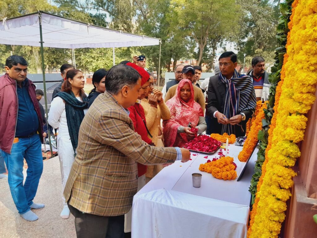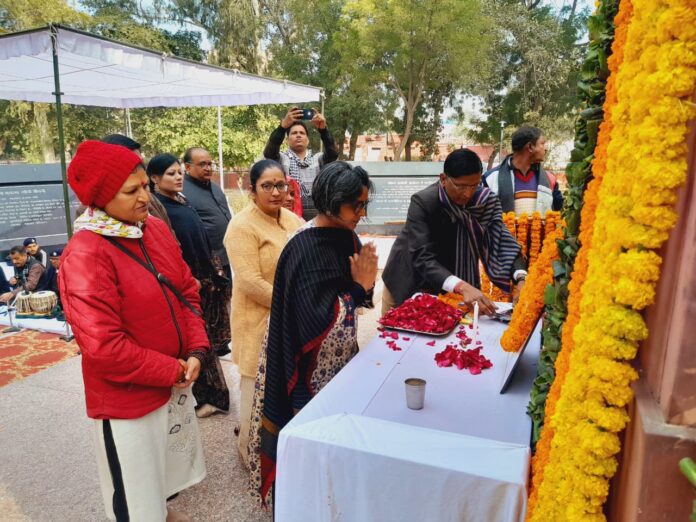 बीकानेर, 30 जनवरी। शहीद दिवस के अवसर पर शुक्रवार को गांधी पार्क में कार्यक्रम आयोजित किया गया। जिला कलेक्टर श्रीमती नम्रता वृष्णि के नेतृत्व में अधिकारियों और स्वयंसेवी संस्थाओं के प्रतिनिधियों ने प्रातः 10:30 बजे राष्ट्रपिता की प्रतिमा के समक्ष पुष्पार्पण के साथ कार्यक्रम की शुरुआत की। प्रातः 10.40 से 10.58 तक रामधुनी और गांधीजी के प्रिय भजनों का गान किया गया।
