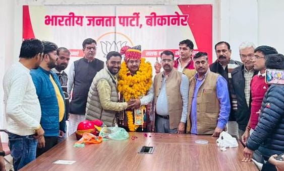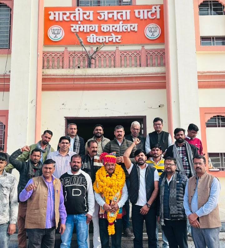 बीकानेर, 27 जनवरी। भारतीय जनता पार्टी, बीकानेर देहात जिला अध्यक्ष श्याम ज पंचारिया के सफल एवं प्रेरणादायी एक वर्ष के कार्यकाल पूर्ण होने के अवसर पर कार्यकर्ताओं द्वारा साफा व माला पहनाकर स्वागत-अभिनंदन किया गया तथा मिठाइयाँ वितरित कर हर्ष व्यक्त किया गया।
