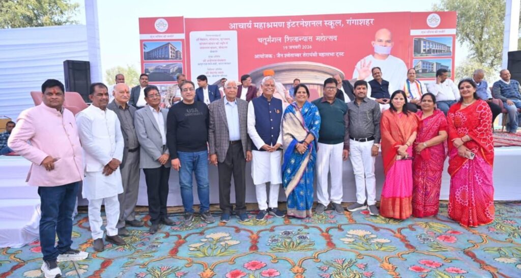 बीकानेर, 19 जनवरी। जैन श्वेताम्बर तेरापंथी महासभा ट्रस्ट द्वारा आचार्य महाश्रमण इंटरनेशनल स्कूल का चतुर्मंगल शिलान्यास महोत्सव का आयोजन 19 जनवरी 2026, सोमवार को किया गया। आयोजन से जुड़े पूर्व यूआईटी चैयरमेन महावीर रांका ने बताया कि पूरे भारत में आचार्य महाश्रमण इंटरनेशनल स्कूल की 108 से अधिक शाखाएं प्रारंभ होने का लक्ष्य रखा गया है। इसी शृंखला में प्रथम चार स्कूलों का शिलान्यास रविवार को श्रीडूंगरगढ़, गंगाशहर, नोखा एवं भुज में किया गया है।  खास बात यह है कि उक्त चारों स्थानों पर 1:30 बजे एक साथ शिलान्यास किया गया।