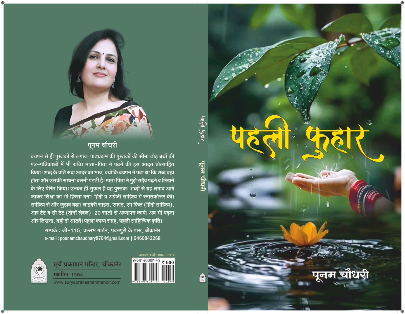 काव्य कृति ‘ पहली फुहार ‘ पर पूनम चौधरी को पुरस्कार घोषित