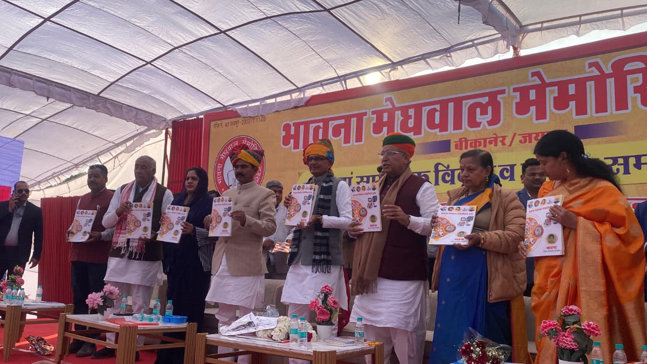 केन्द्रीय कानून मंत्री अर्जुन राम मेघवाल ने बताया कि भावना मेघवाल मेमोरियल ट्रस्ट द्वारा वर्ष 1999 से सामाजिक सरोकारों की विभिन्न गतिविधियां आयोजित की जा रही हैं। वर्ष 2007 से अब तक 599 बेटियों को सामूहिक विवाह समारोहों के दौरान विवाह बंधन में बांधा गया है। उन्होंने ट्रस्ट की अन्य गतिवधियों के बारे में बताया। उन्होंने लोकगीतों और कहावतों के माध्यम से बेटियों के सुखद जीवन की कामना की और उन्हें आगे बढ़ने का आशीर्वाद दिया।