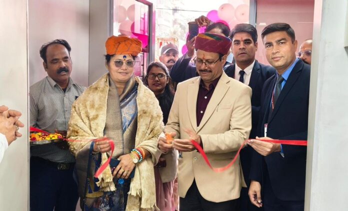 बीकानेर, 03 फ़रवरी। गंगाशहर क्षेत्र में आज एक्सिस बैंक की नई शाखा का विधिवत उद्घाटन डिविजनल कमिश्नर विश्राम मीणा द्वारा किया गया। इस अवसर पर भाजपा बीकानेर शहर अध्यक्ष श्रीमती सुमन छाजेड़ विशिष्ट अतिथि के रूप में उपस्थित रहीं।