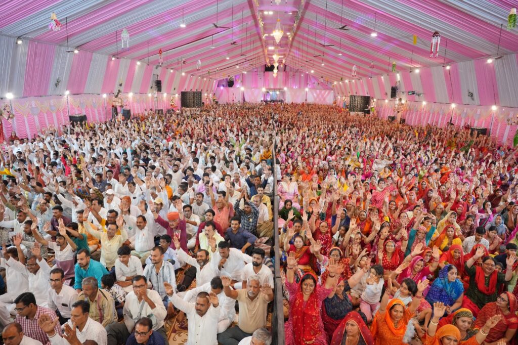 जगद्गुरु श्री श्री 1008 आचार्य श्री वसंत विजयानंद गिरि जी महाराज के सान्निध्य में गंगाशहर राेड़ स्थित अग्रवाल भवन में चल रहे चैत्र नवरात्रि महामहाेत्सव में रात्रि प्रहर में आयाेजित ऐतिहासिक रुप से पहली बार देवी भागवत कथा सुनने के लिए, रोग, दुःख कष्ट मिटाने स्वयं चमत्कारी अनुभव प्राप्त करने श्रद्धालुओं की भारी भीड़ उमड़ रही है। श्रद्धालूओं का सैलाब पिछले तीन दिन से इतना उमड़ रहा है कि पंडाल भी छाेटा पड़ रहा है और लाेग बाहर बैठकर एलइडी टीवी से कथा श्रवण कर लाभान्वित हो रहे हैं।