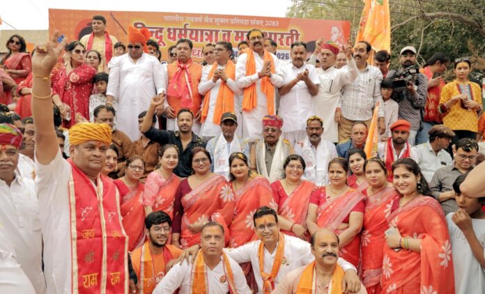 बीकानेर,19 मार्च। पूर्व यूआईटी चैयरमेन महावीर रांका द्वारा केईएम रोड प्रेमजी प्वाइंट पर धर्मयात्रा का पुष्पवर्षा कर स्वागत किया गया। भाजपा नेता महावीर रांका ने कहा कि सनातन धर्म सिर्फ आस्था नहीं है, यह भारत की आत्मा है। भारतीय संस्कृति और परम्पराओं को निरंतर आगे बढ़ाने के उद्देश्य से धर्मयात्रा का स्वरूप भी विराट होता जा रहा है। लाखों लोगों का धर्मयात्रा में शामिल होना और जागरुकता की पहचान है। पवन महनोत ने बताया कि खाजूवाला विधायक डॉ. विश्वनाथ मेघवाल, भाजपा देहात जिलाध्यक्ष श्याम पंचारिया, भाजपा नेता रविशेखर मेघवाल, चम्पालाल गेदर ने धर्मयात्रा में शामिल संत-महात्माओं, सजीव झांकियों तथा जन-जन पर पुष्पवर्षा से स्वागत तथा जयश्रीराम के उद्घोष से उत्साह का संचार किया।