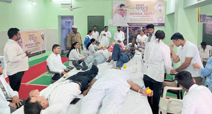 मानव एकता दिवस के अवसर पर ब्रांच . बीकानेर में रक्तदान शिविर का आयोजन हुआ,जिसका उद्घाटन जोनल इंचार्ज बहन डॉ संध्या सक्सेना, खाजूवाला के संयोजक महात्मा महेन्द्र सिंह ने किया।जिसमे पी बी एम अस्पताल के अनुभवी चिकित्सक एवं उनकी टीम ने रक्तदाताओं की समुचित स्वास्थ्य जांच के उपरांत सुरक्षित, सुव्यवस्थित एवं प्रभावी ढंग से रक्तदान की प्रक्रिया सम्पन्न कराई; जिनसे 24 महिलाओं और 50 पुरुषों ने मिलकर 74 युनिट रक्त संकलित किया। सेवादल अधिकारी अरुण सक्सेना, कमलेंद्र मल्होत्रा एवं रमा छाबड़ा के मार्गदर्शन में संपूर्ण आयोजन के दौरान स्वच्छता, सतर्कता एवं सेवा-भाव का विशेष ध्यान रखा गया, जिससे यह पहल केवल जीवनदायिनी सेवा तक सीमित न रहकर मानवता, करुणा और उत्तरदायित्व के उच्चतम आदर्श का प्रतीक बनकर उभरी।