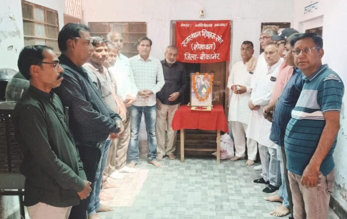 बीकानेर 11 अप्रैल । राजस्थान शिक्षक संघ(शे) जिला कमेटी बीकानेर द्वारा महात्मा ज्योतिबा फुले के 199वें जयंती दिवस के अवसर पर संगठन के स्थानीय कार्यालय में समरसता कार्यक्रम आयोजित किया गया। कार्यक्रम में उपस्थित संगठन के सदस्यो/पदाधिकारियों द्वारा महात्मा ज्योतिबा फुले को श्रद्धा सुमन अर्पित किए गए। संगठन के प्रदेश उपसभाध्यक्ष रेवंतराम गोदारा ने ज्योतिबा फुले को महान समाज सुधारक एवं शिक्षा के क्षेत्र में अमूल्य योगदान देने वाला शिक्षादूत बताया। वरिष्ठ सदस्य पूनमचंद शर्मा ने कहा कि ज्योतिबा फुले ने आजीवन सर्वसमाज के शैक्षिक प्रतिनिधि के रूप में कार्य किया।